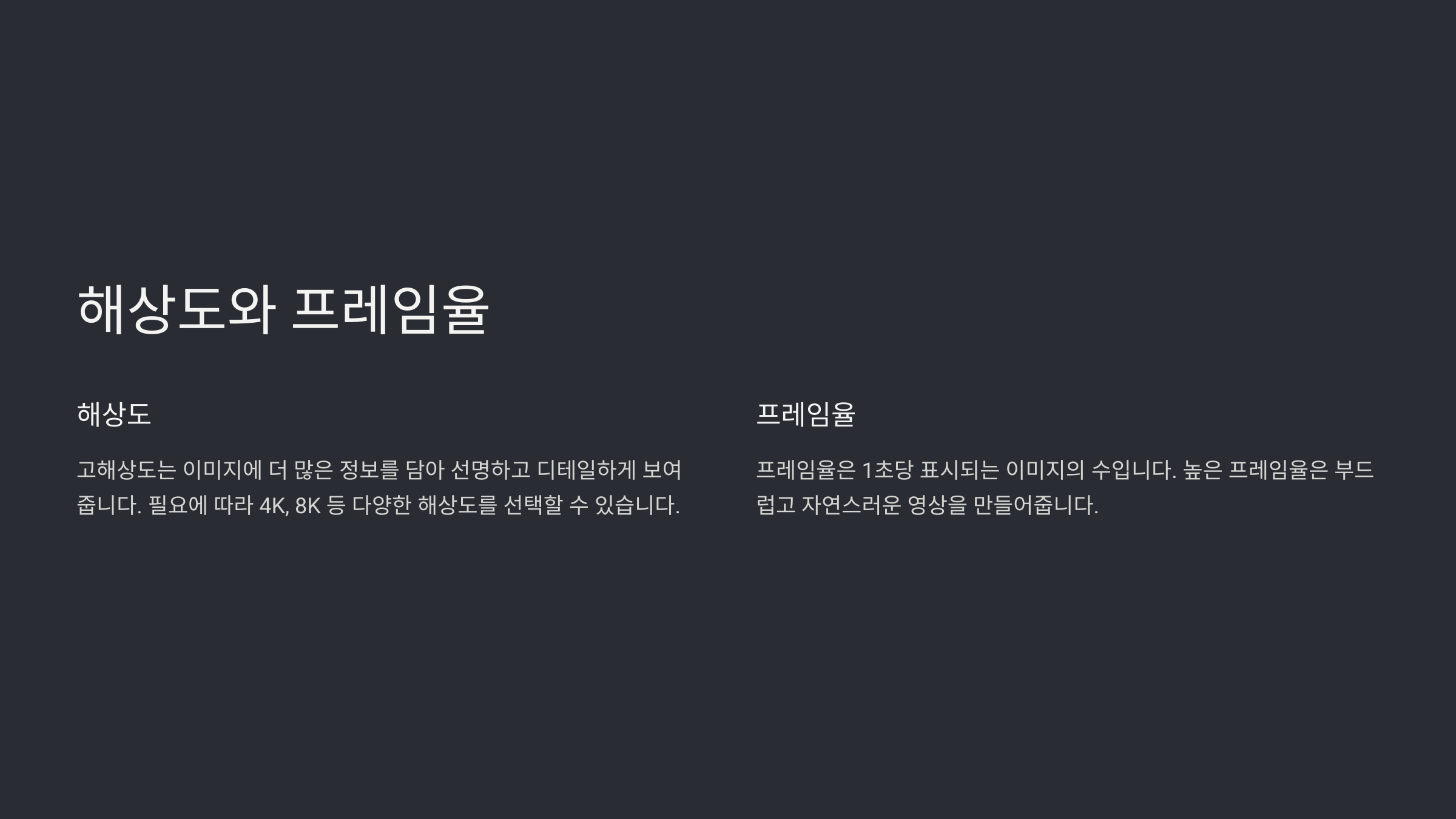 카메라 해상도와 프레임율